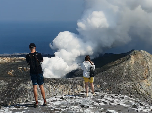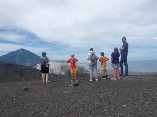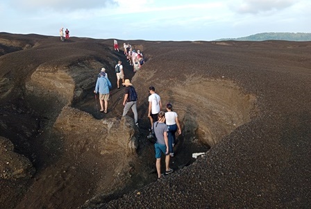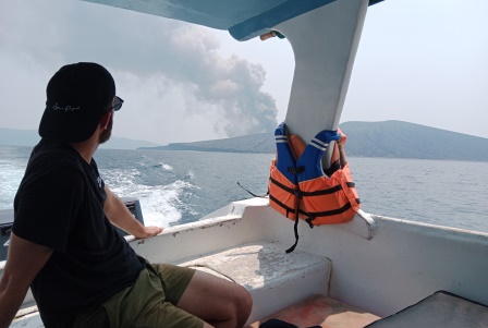 Landing at the black sandy beach in Anak Krakatau and start climbing up to the first level,walking around on the top of Krakatau where you can see the view of volcano crater